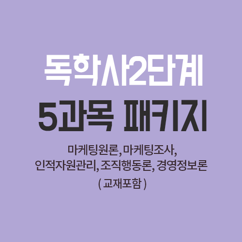 수강과목 | 2단계 5과목 패키지 : 마케팅원론, 마케팅조사, 조직행동론, 인적자원관리, 경영정보론 (다른 과목으로 변경 가능합니다) |